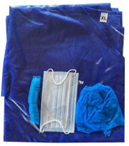 Inhalt: 1 St. PP Hemd und Hose, 1 St. blauer Netzhaube, 1 St. blauer Mundschutz mit Gummibändern, 1 Paar blauer PE-Schuhschutz.