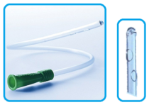 Länge: 40 cm, distal verschlossenes Nelaton-Ende mit 2 Seitenöffnungen, international farbcodiert, proximal trichterförmiges Ende, Einweg.