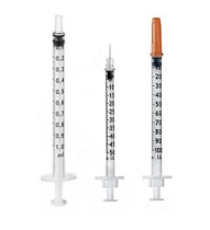 Eigenschaften: steril, einweg, 3-teilig, mit 29G1/2 Kanüle, Luer-Slip Anschluß, mit Kolbenbremse