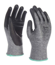 Grauer dünner Handschuh mit Schnittfestigkeit Stufe 3, mit schwarzer PU-Beschichtung