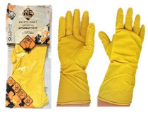 Geflockte, gelbe, Naturlatex Haushaltsgummihandschuhe mit einem Gewicht von 40g pro Paar.