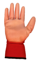 Material: rotes Rundgestrickes 13G Polyesterfaser, gummierte Manschette, Polyurethan-Dippen auf der Handfläche.