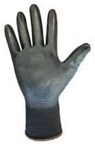 Material: Schwarzes Rundgestrickes 13G Polyesterfaser, gummierte Manschette, Polyurethan-Dippen auf der Handfläche.
