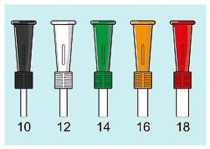 Eigenschaften: steril, zum Einmalgebrauch, Länge: 20 cm, internationale Farbcodierung, Folienverpackung, einzeln.