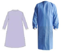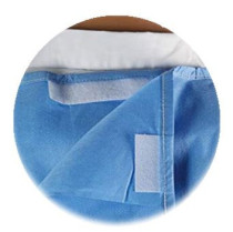Jellemzők: EO gázzal sterilizálva,nyaknál tépőzárral rögzíthető, 4 kötővel a deréknál, pamut csuklórész.