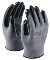 Polyester-Handschuh, grau, schwarz mit Nitril-Handflächenbeschichtung