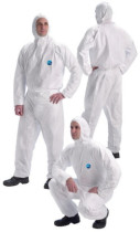 Tyvek®-Material an Vorder- und Seitenbereichen, das sich unter Berücksichtigung der Bewegungen während der Arbeit auch auf Rücken und Unterschenkel erstreckt: extrem abriebfest und reißfest, fusselfrei, wasserabweisend, schützt vor Partikeln >1 µm, radioaktiven Partikeln sowie wasserbasierten, spritzenden anorganischen Chemikalien.