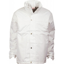 Fehér élelmiszeripari vattakabát orkán külső alapanyagból.