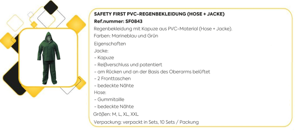 Safety First PVC-Regenbekleidung (Hose + Jacke)