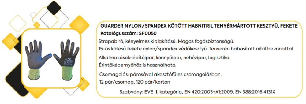 Guarder Nylon/Spandex kötött habnitril tenyérmártott kesztyű (fekete) – rugalmas, strapabíró kesztyű, amely kényelmes viseletet biztosít, miközben hatékony védelmet nyújt a sérülések ellen.