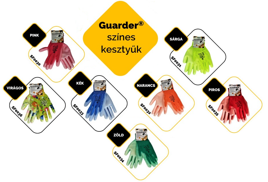 Guarder Poliészter kesztyű, PU tenyérmártott: könnyű és rugalmas kesztyű, amely kiváló tapintásérzetet biztosít, így ideális a finomabb kerti munkákhoz.